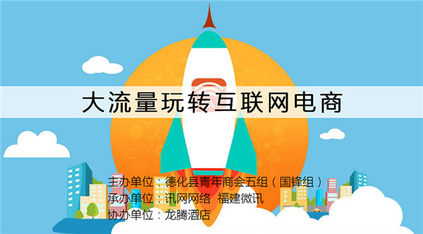 9月26日下午,由德化縣青年商會(huì)五組(國鋒組)主辦,訊網(wǎng)網(wǎng)絡(luò)、福建微訊承辦的“大流量玩轉(zhuǎn)互聯(lián)網(wǎng)電商”(首站)主題沙龍?jiān)诘禄堯v酒店舉行。