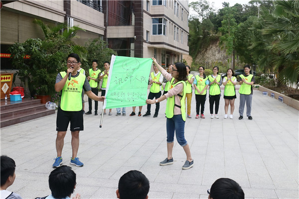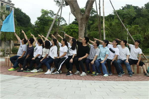 玩了太多遍的拓展形式,大家也都輕車熟路,分隊,想隊名,集口號等等,也是很快的就完成。
