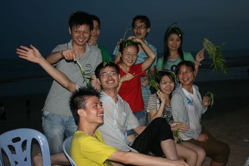 眾人忙著準備燒烤材料